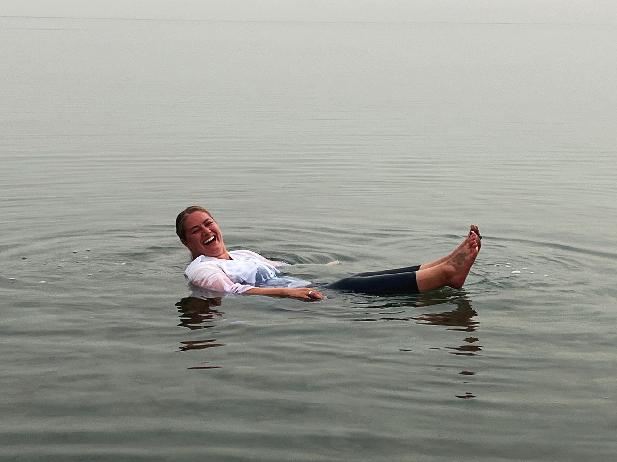 From there we drove up the length of the Dead Sea looking for a spot to pop in for a quick float. I had been told that I wouldn’t need much time there but that it was a unique experience which I’m all about. We were starving after our hike so stopped somewhere for a quick bite and beer and asked our server where to find free access to the sea instead of at the fancy resorts. Always ask your servers, they give the best advice and many a time have saved me extra hassles and cost. We found a spot and I popped in for a float while he skipped rocks. The water is crazy and I couldn’t stop giggling as you float so high up out of the water. The salt on your skin isn’t the nicest feeling afterwards so we headed home anxious to clean up before our dinner reservation at his favorite restaurant.