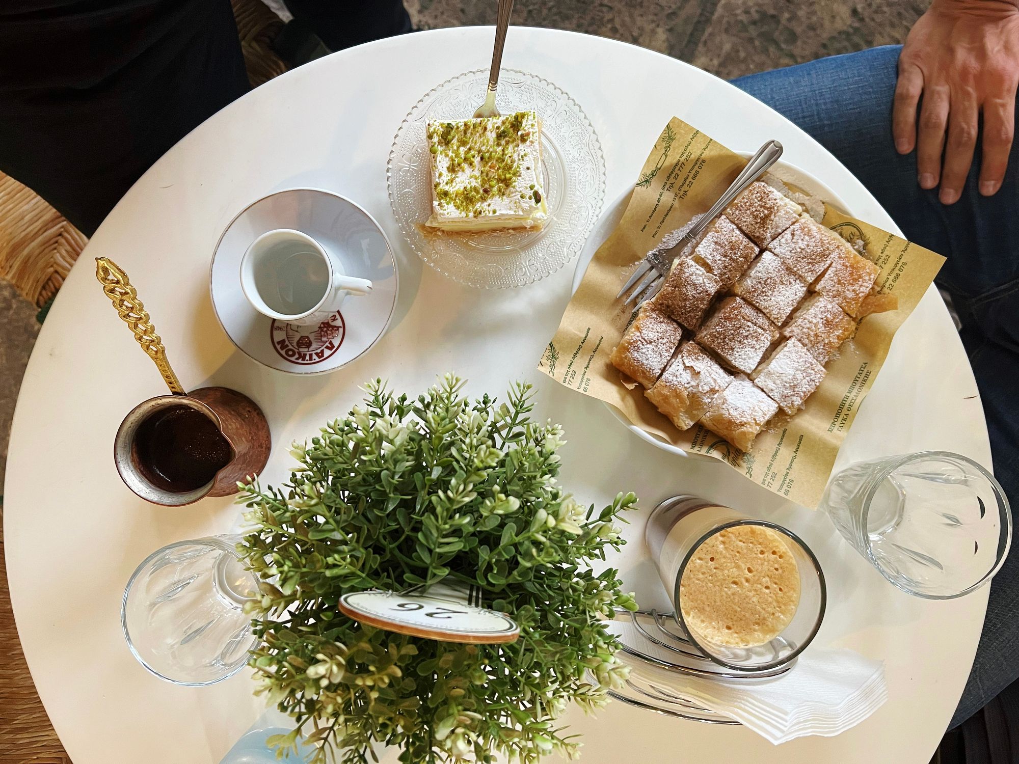 We headed to the old town to explore and I must say it was quite charming. The old walled city was filled with pedestrian-only streets lined with cafes that begged me to sit a while and people watch. While we walked I couldn’t help but scope out places to have my morning coffee the next day. (Pieto proved my favorite during my stay.) We walked to the pedestrian border crossing on Ledras street and just around the corner he introduced me to some local foods paired with Cypriot coffee at YiaYia Victoria. (If you go, get the pistachio cream!) I must confess that I thought these were considered desserts but have since been informed that they are often breakfast foods. How very lucky the Cypriots are to enjoy these incredible treats first thing in the morning!
