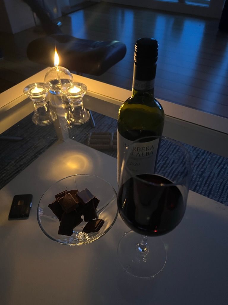 Time flies by faster than both of us thought possible and we were so busy talking that he forgot to cook! With a sudden burst of hunger, he rushes down to the local spot to pick up burgers while I sort plans for the next day. He returns, burgers in hand and we sit down to our little takeout feast. I hate showing up empty handed as a guest but I didn’t exactly plan for this. Per usual I only have chocolate to offer (my friends know there’s always some in my purse, melted or otherwise). I teased him about our romantic dinner and the man proceeds to shut off the lights and light candles. He then opens up the chocolate bar and break it into tiny pieces and put it in a bowl! Full points for presentation. A bottle of wine appears and we spend the next few hours sitting in soft lighting and chatting on the couch.
